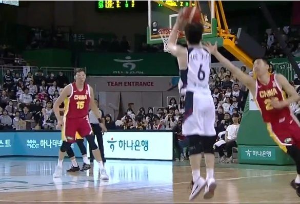 中国男篮上半场没有球员得分上双,全队三分12中1低迷,仅程帅澎命中一记三分,韩国男篮命中7记三分,尤其是李政炫6中6狂轰16分。