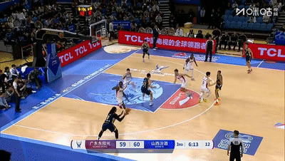 第三节王洪泽为自己赢得了先发机会,山西首发不变继续主打诺威尔+刘传兴,开局奎因率先发难制造罚球+一条龙+空接连下5分,6分53秒徐杰转换再进三分,广东将分差缩小来到59-60.